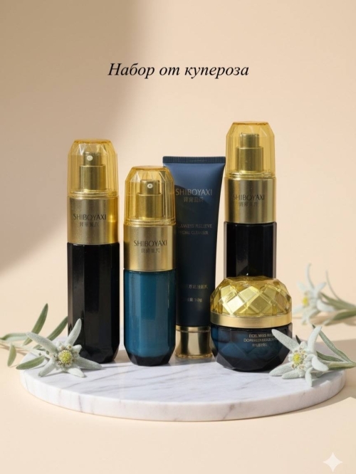 №3586 Набор от купероза Экстракт эдельвейса содержит антиоксиданты, противовоспалительные и защитные вещества, которые помогают: