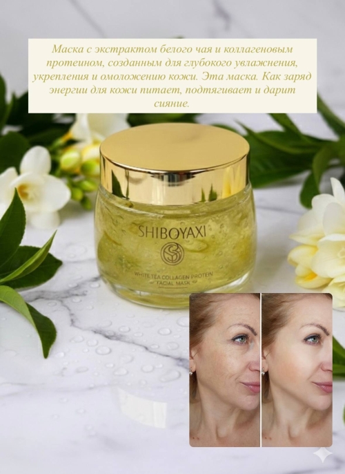 №6925 Маска с экстрактом белого чая и коллагена Маска с экстрактом белого чая и коллагеновым протеином, созданным для глубокого увлажнения, укрепления и омоложению кожи. Эта маска. Как заряд энергии для кожи питает, подтягивает и дарит сияние.